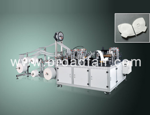 蝶型口罩制造機用于生產(chǎn)適用于高污染工業(yè)用的蝶型型口罩,口罩本體部分可使用6-10層的PP無紡布及過濾材料。從原材料入料到鼻線插入、成品的制成均為一條線自動化作業(yè)??谡挚砂惭b呼吸閥,過濾效果可達N95標準。